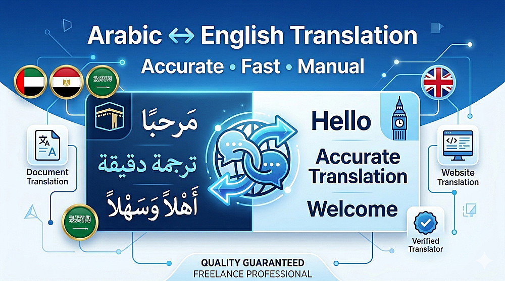أقدم خدمة ترجمة النصوص والمقالات من العربية إلى الإنجليزية والعكس بدقة واحترافية.