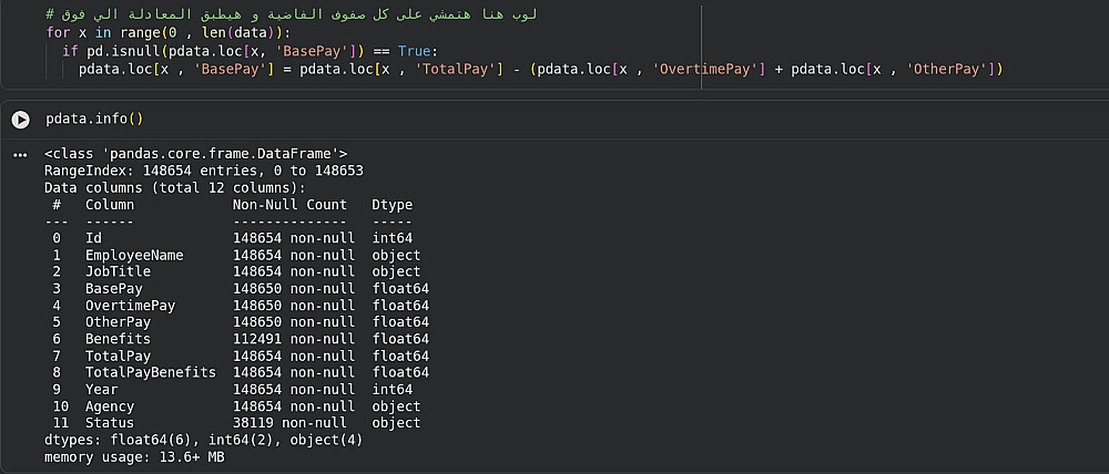 - معالجة القيم المفقودة (Missing Data): التعامل مع الخانات الفارغة إما بالحذف الذكي أو التعويض الإحصائي الصحيح.