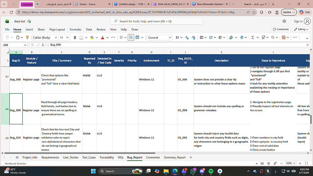 -اكتشاف الأخطاء (Bugs) والمشاكل التقنية