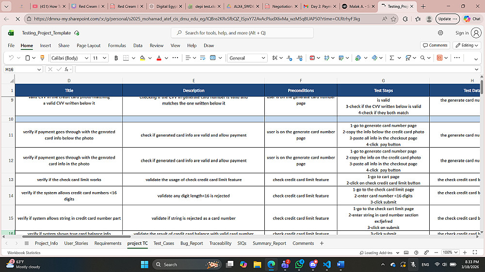 - لذلك أقدم لك خدمة اختبار برمجي شامل (Software Testing) لمساعدتك في اكتشاف الأخطاء وتحسين الأداء وضمان جودة منتجك قبل إطلاقه أو استخدامه بشكل واسع.
