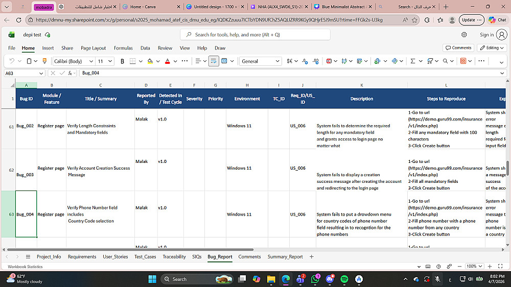 - خطوات إعادة حدوث الخطأ (Steps to Reproduce)