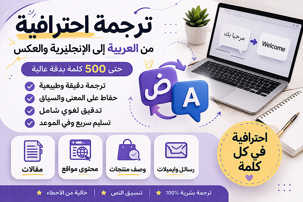 أقدّم لك خدمة ترجمة احترافية من العربية إلى الإنجليزية والعكس، مع الحفاظ على الأسلوب والمعنى والسياق.
