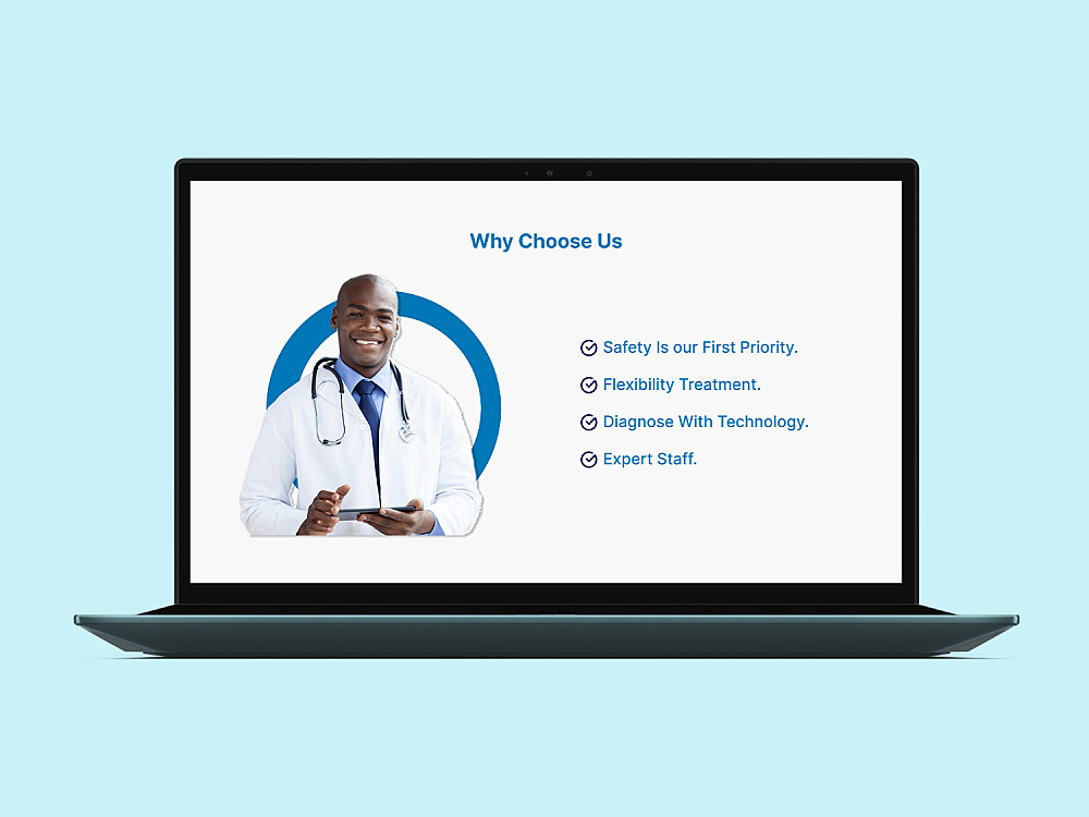يركز التصميم على تقديم تجربة مستخدم واضحة وبسيطة تساعد الزائر على الوصول إلى المعلومات الطبية وحجز الموعد بسهولة. كما تم استخدام ألوان هادئة مرتبطة بالمجال الطبي مع تصميم نظيف يعزز الثقة لدى المستخدم.