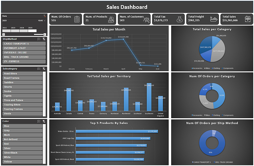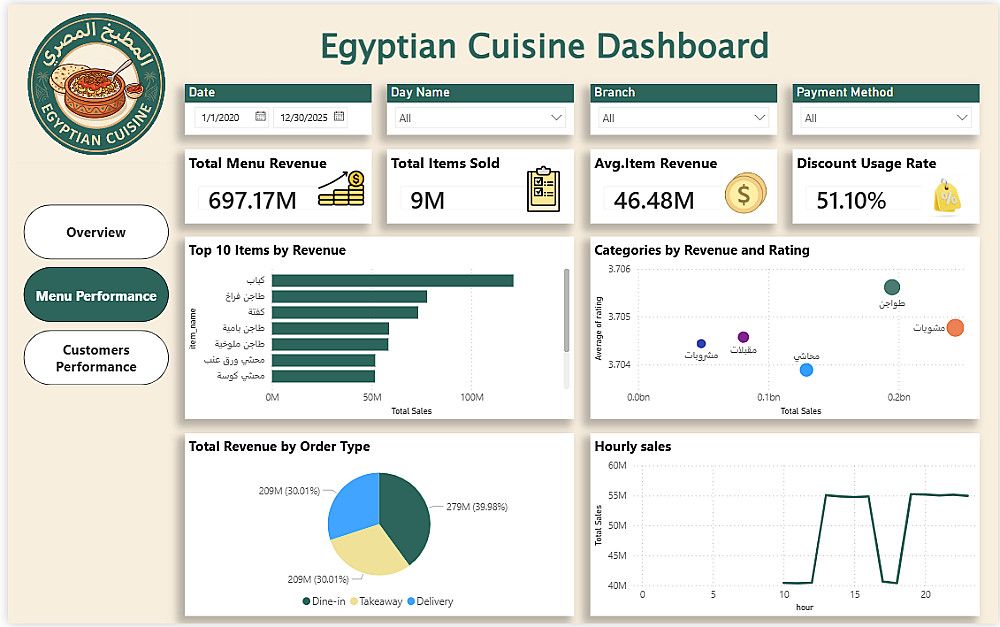 - صفحة Dashboard تفاعلية احترافية تحتوي حتى 6 رسوم بيانية، 6 مؤشرات، 4 فلاتر
