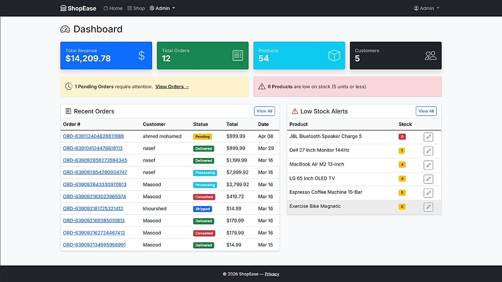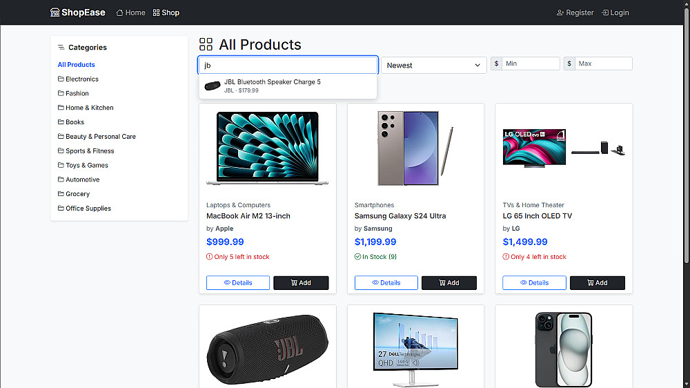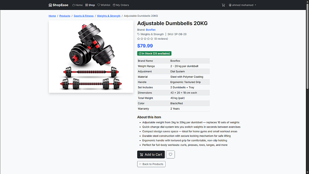 يوفر التطبيق تجربة كاملة للمستخدم من تصفح المنتجات وإضافتها إلى سلة التسوق وإتمام عملية الشراء، بالإضافة إلى لوحة تحكم متكاملة للإدارة.