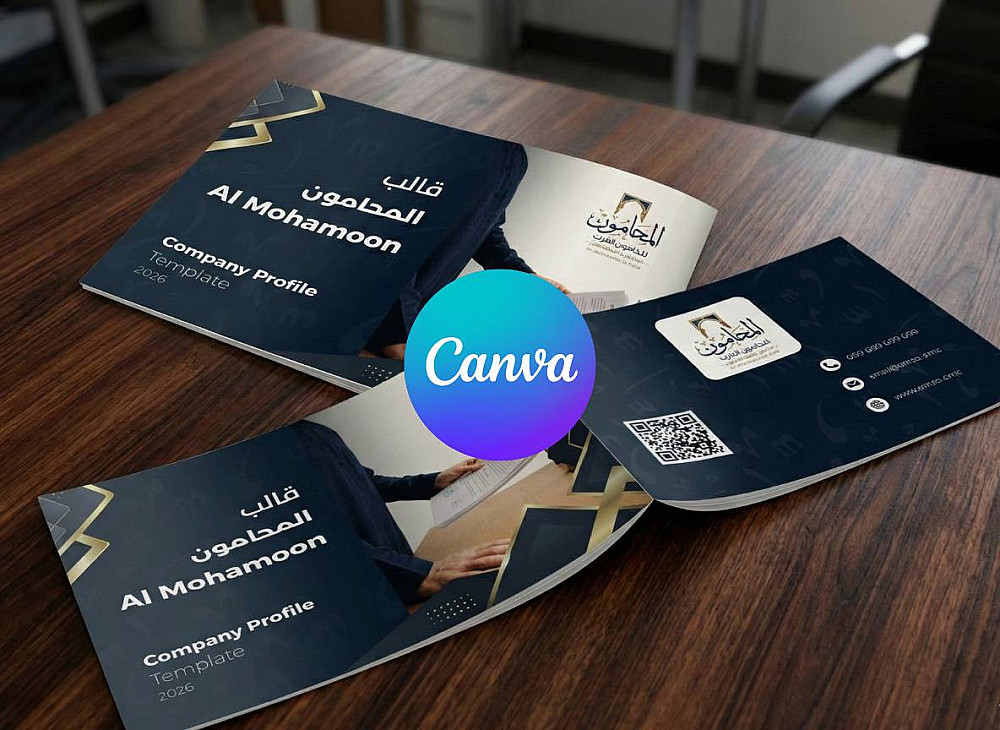 قمت باستغلال التقنية المتطورة للذكاء الاصطناعي والاداة الاحترافية السهلة الاشهر بالتصميم كانفا لعمل قالب بروفايل رسمي حصري قابل للتعديل يصلح لمكتب محاماه، مكتب استشارات او مكتب محاسبة.