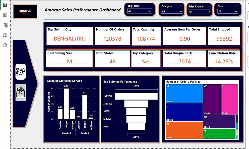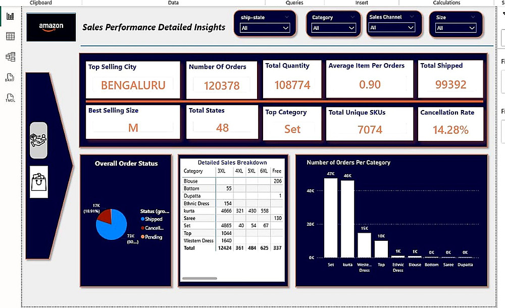 تحليل بيانات حتى 20,000 صف وإنشاء Dashboard من صفحة واحدة تحتوي على 5 Charts و 4 KPIs بشكل احترافي وتفاعلي.