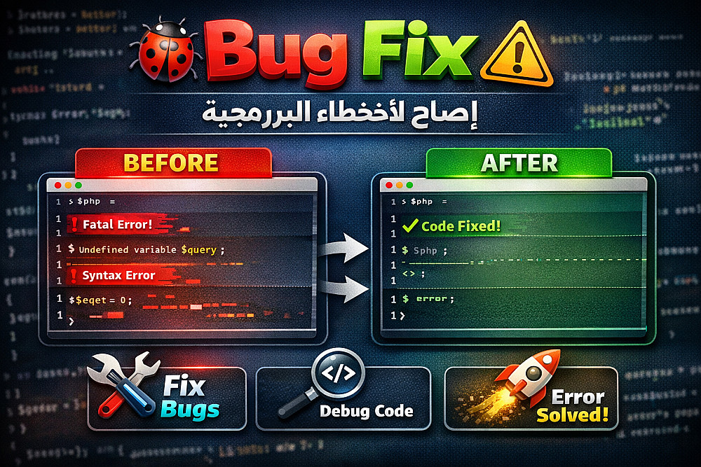 أقدم خدمة احترافية لإصلاح الأخطاء البرمجية (Bugs) في المواقع والتطبيقات بسرعة ودقة عالية
