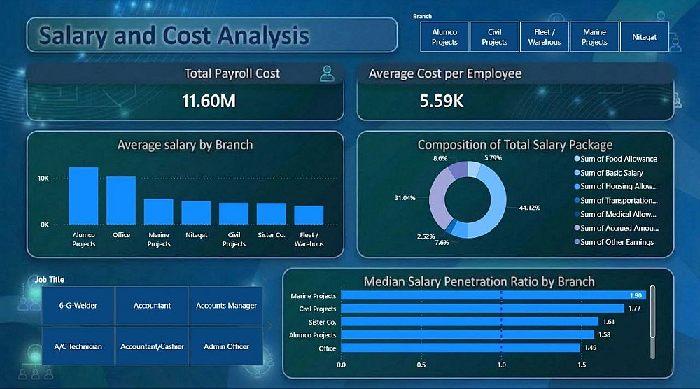 مقابل السعر الأساسي للخدمة، سأقوم ببناء نموذج بيانات (Data Model) وتصميم صفحة داشبورد واحدة (One-Page Dashboard) تفاعلية بالكامل، تتضمن: