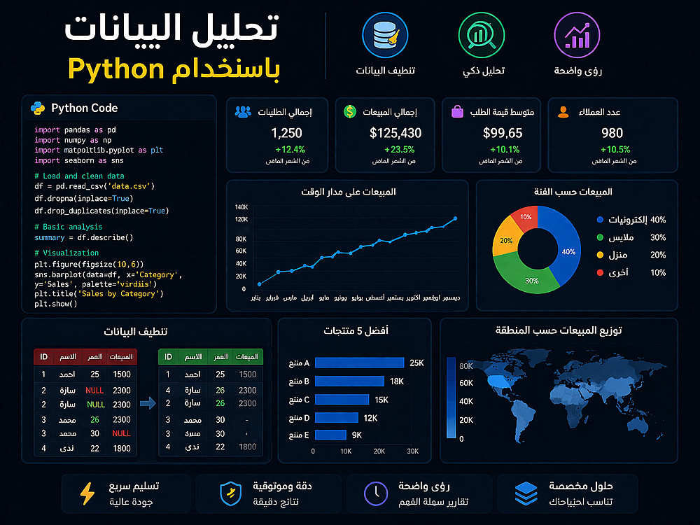 هتستلم شغل نضيف + تحليل واضح + رسوم بيانية سهلة الفهم.