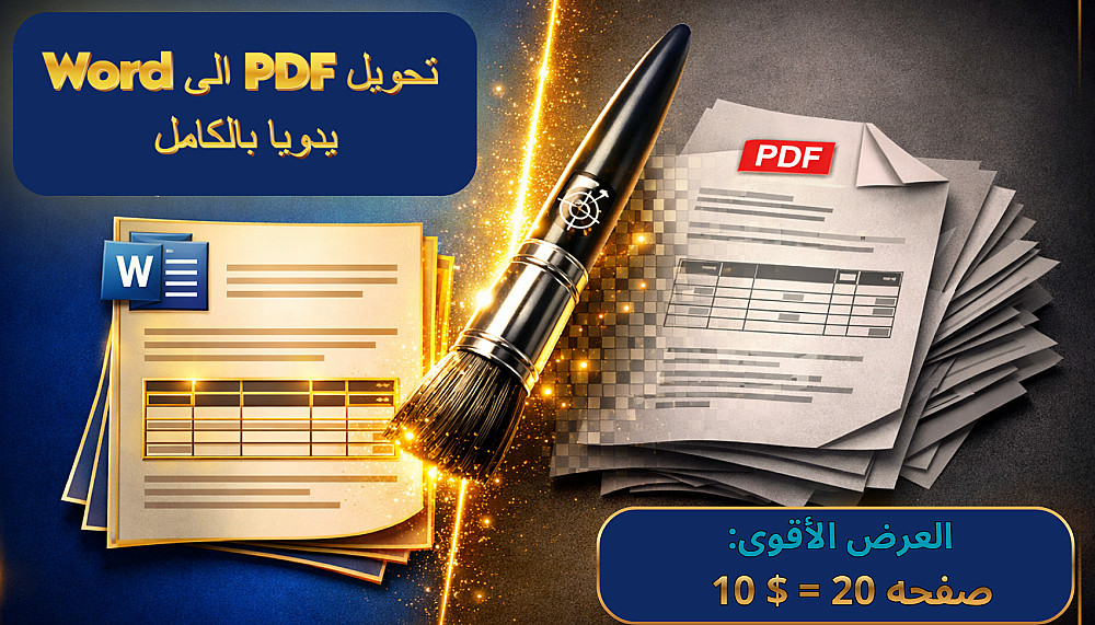 هل تبحث عن تحويل ملفاتك من PDF إلى Word بدقة متناهية دون أخطاء البرامج الآلية؟ أنا هنا لأقدم لك خدمة التحويل اليدوي الاحترافي.