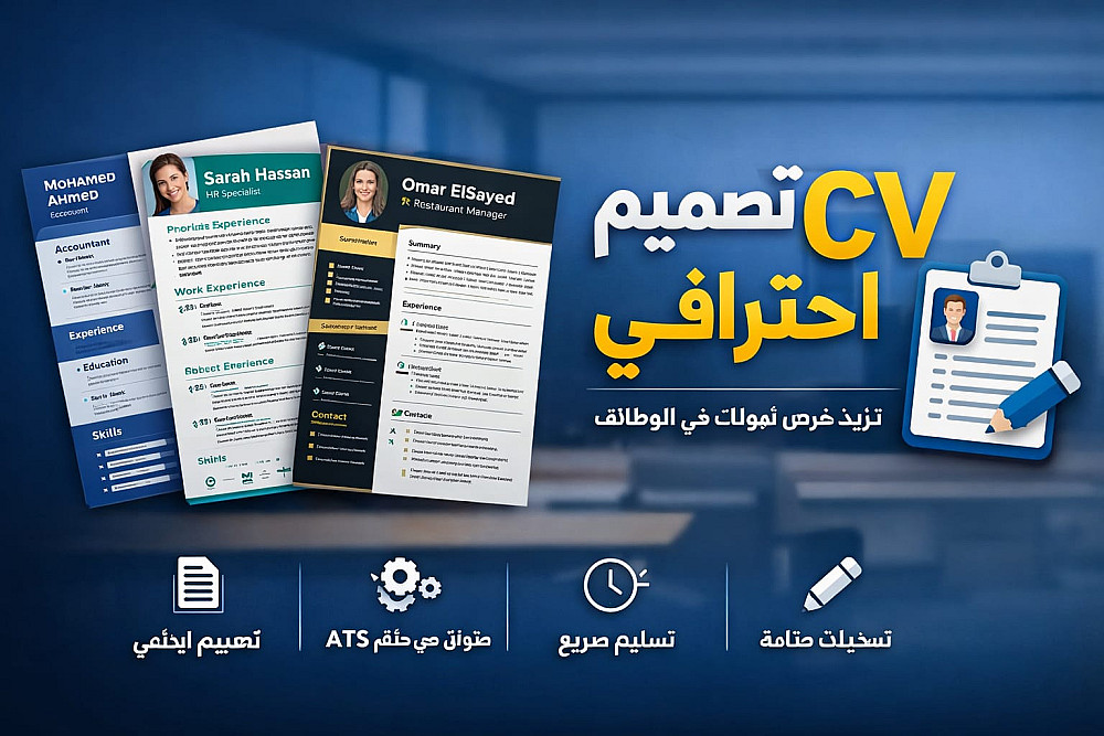 أقدم لك خدمة تصميم سيرة ذاتية احترافية (CV) بشكل جذاب ومنظم يساعدك على التميز أمام أصحاب العمل