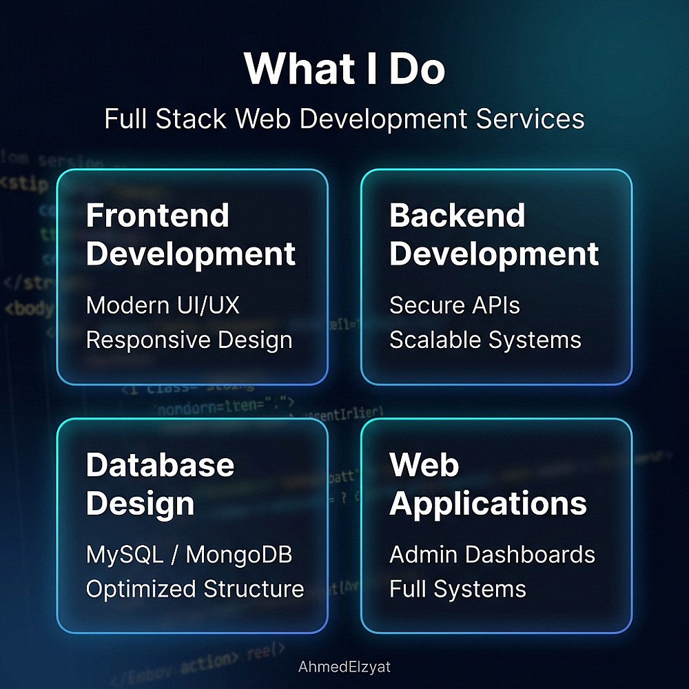 مطور Full Stack محترف | تصميم وبرمجة مواقع وأنظمة ويب متكاملة (Frontend + Backend + Database) مع تسليم كود المصدر