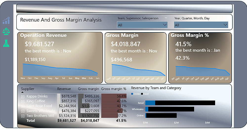 Dashboard تفاعلية واحدة مصممة بشكل احترافي (صفحة واحدة - 4 مرئيات تفاعلية)