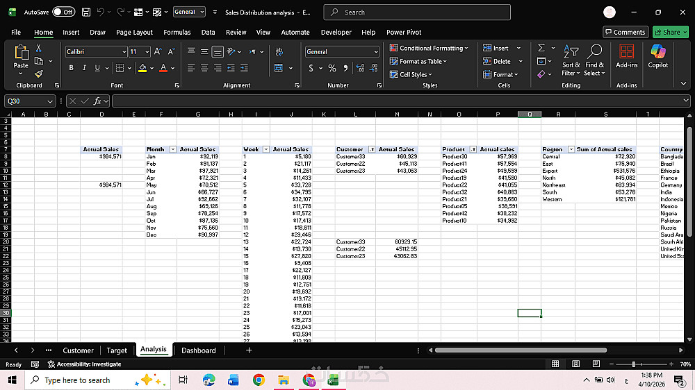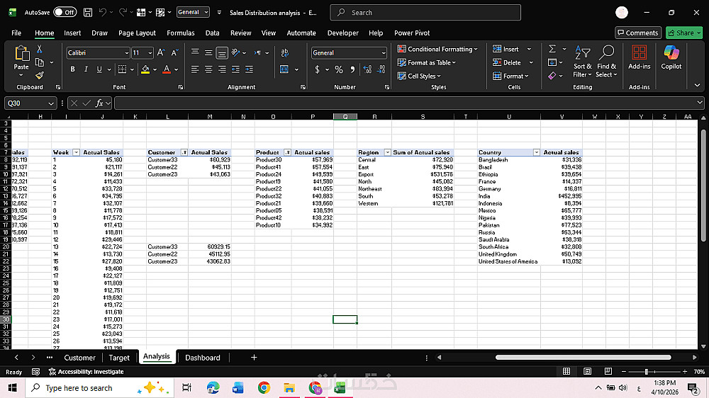 داشبورد تفاعلي احترافي و Pivot Tables لتحليل البيانات