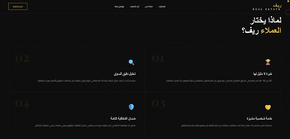 المشروع يمكن أن يحتوي على أقسام بواجهات مختلفة (أي صفحات منفصلة لكل قسم) أو أن يكون به عناوين لأقسام تنتقل بك لكل قسم بنفس الصفحة عند الضغط عليها.