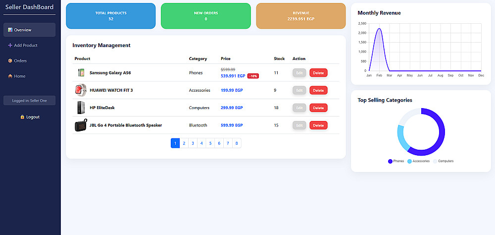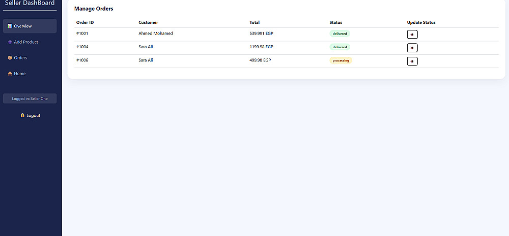 دعم تعدد أنواع المستخدمين (Admin – Seller – Customer) مع واجهات مختلفة لكل دور.