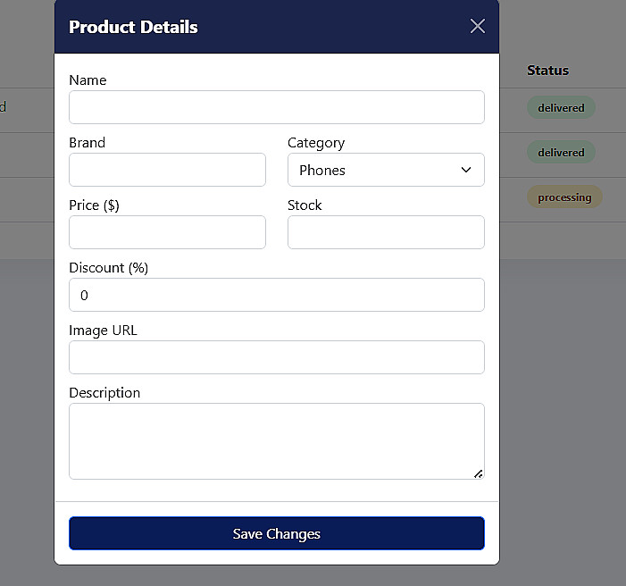 لوحة تحكم للبائع لإدارة المنتجات بسهولة (إضافة / تعديل / حذف) مع تحديث فوري.