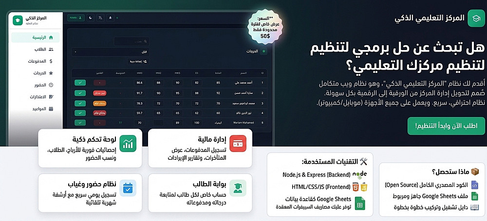 هل تبحث عن حل برمجي احترافي لتنظيم مركزك التعليمي أو مدرستك الخاصة؟