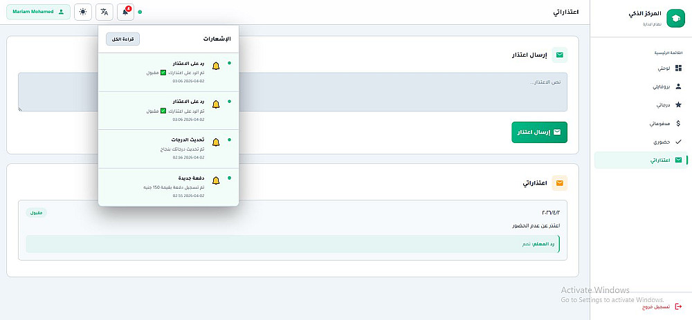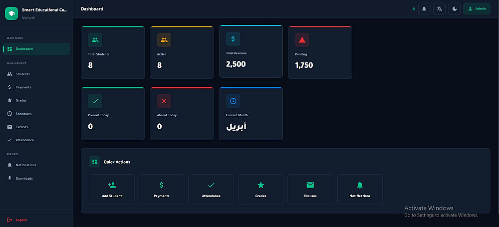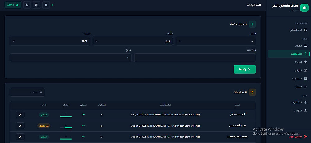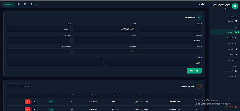 نظام إدارة مركز تعليمي ذكي ومتكامل