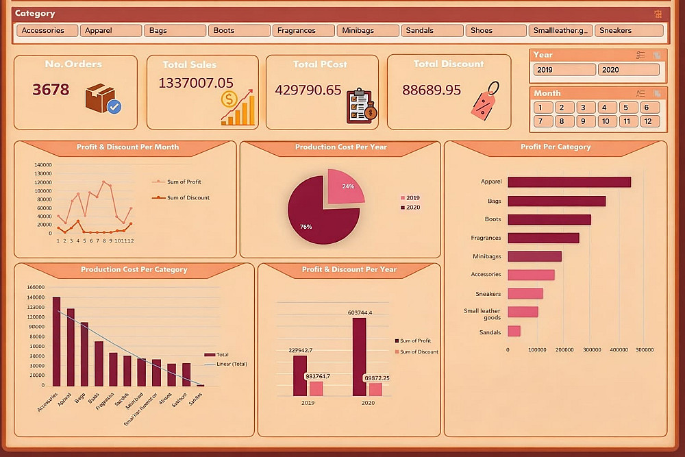 ✔ داشبورد تفاعلي يمكنك من تصفية البيانات بسهولة (سنة – منتج – فرع).