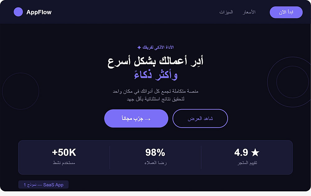 تصميم واجهة احترافية لقسم واحد (Section) من صفحة الهبوط (مثل قسم المقدمة Header).