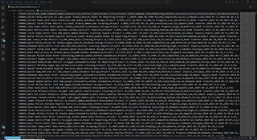 يتم العمل على ملفات Excel وCSV مع الالتزام بالدقة في التنفيذ وسرعة التسليم، مع مراعاة الحفاظ الكامل على سرية البيانات.