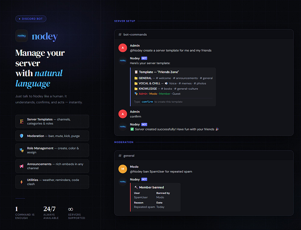 أمن تكتيكي: حماية مدمجة ضد التخريب (Anti-Nuke)، سجلات مراقبة مخفية، نظام تنظيف ذكي، وقوائم بيضاء خاصة لتأمين بياناتك.