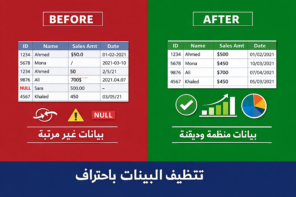 دعني أساعدك في تحويلها إلى بيانات نظيفة ودقيقة وجاهزة للتحليل!