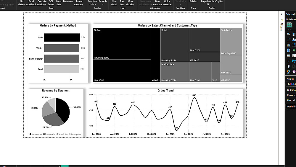 قدم خدمة تصميم داشبورد احترافي باستخدام Power BI لتحليل البيانات وعرضها بطريقة واضحة وسهلة تساعدك على اتخاذ قرارات أفضل. أقوم بتحويل بياناتك الخام إلى تقارير تفاعلية تحتوي على مؤشرات أداء رئيسية ورسوم بيانية متنوعة مثل تحليل الإيرادات والأرباح واتجاهات المبيعات وتوزيع العملاء والمنتجات.