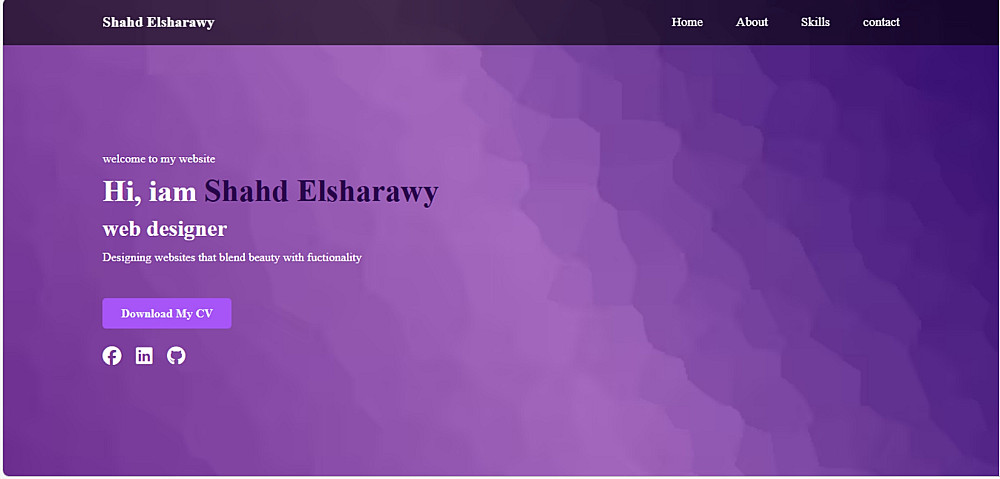 • الرئيسية (Home): ترحيب + اسمك + تخصصك + زر دعوة للتواصل.