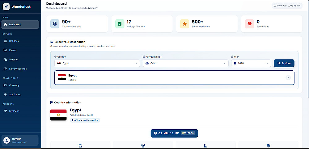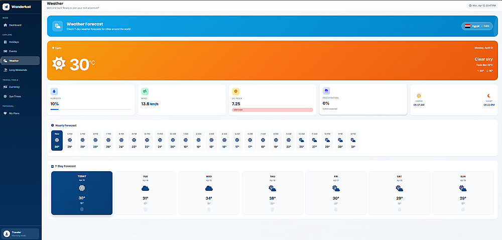عرض معلومات تفصيلية (زي الطقس – الأحداث – الإجازات)
