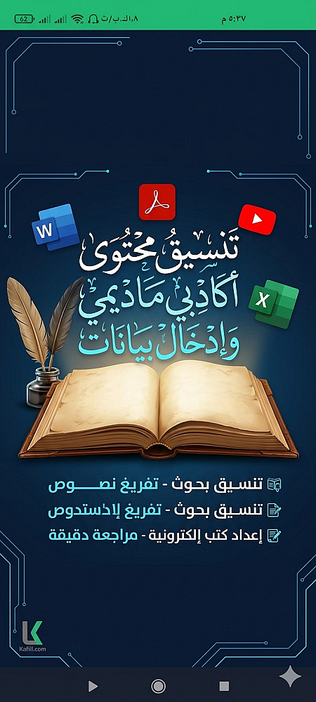 هل تبحث عن الدقة، السرعة، والتنسيق الاحترافي لملفاتك؟ أقدم لك خدمة تفريغ وتنسيق المحتوى بأسلوب أكاديمي ومنظم يضمن لك الحصول على ملف جاهز للطباعة أو النشر فوراً