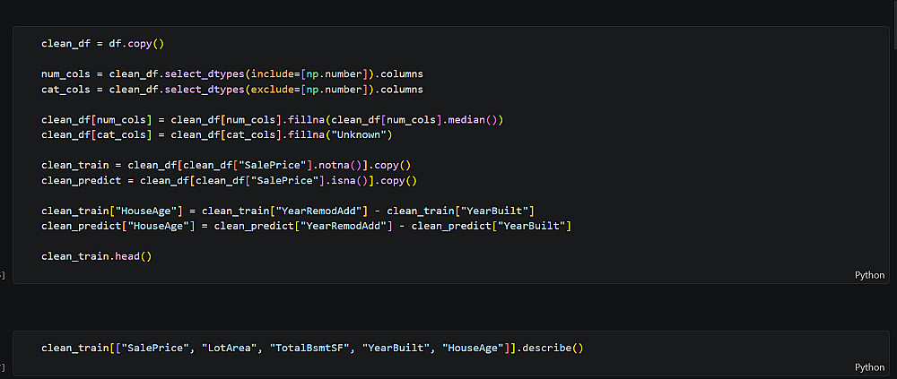 النتيجة النهائية هي بيانات نظيفة يمكن الاعتماد عليها في التحليل أو في بناء نماذج تعلم آلي. بالإضافة إلى ذلك، تم إنتاج مجموعة من الرسوم البيانية التي توضح توزيع الأسعار، والعلاقات بين المتغيرات المختلفة، إلى جانب الكشف عن أي أنماط أو اتجاهات مهمة داخل البيانات، مما يساعد على فهم العوامل المؤثرة على أسعار المنازل بشكل أوضح.