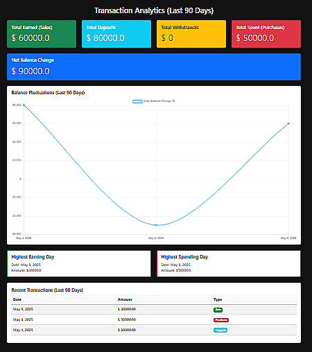 - لوحة تحكم للمستخدم لمتابعة النشاط