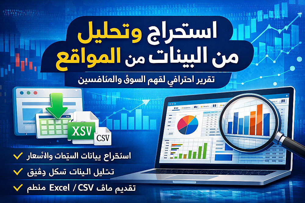 سأقوم باستخراج وتحليل بيانات المواقع الإلكترونية وتحويلها إلى تقارير ذكية تساعدك على اتخاذ قرارات تجارية