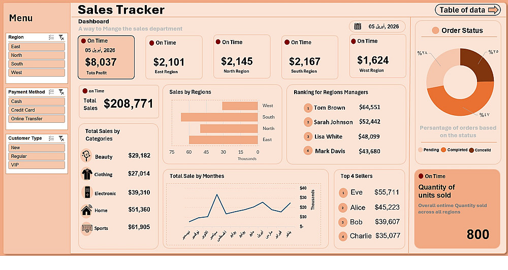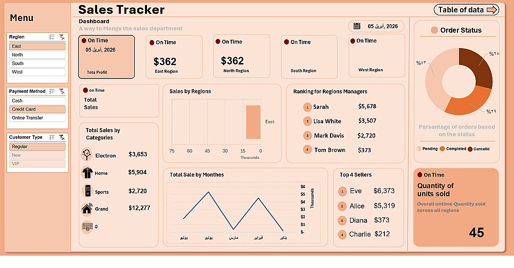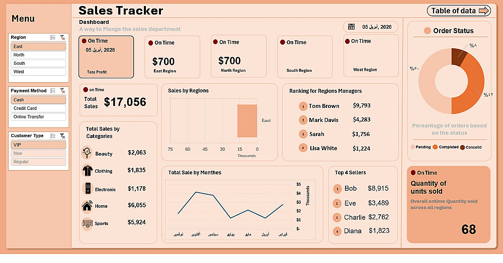 تصميم داش بورد لتحليل نتائج الاعمال باستخدام اكسيل