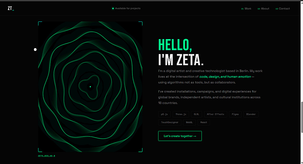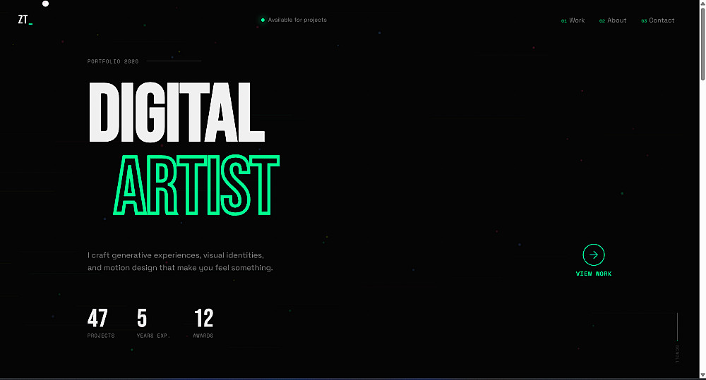 أقدّم لك بورتفوليو إبداعي احترافي مصمم لمن يريد أن يترك أثراً — فنانون رقميون، مصممون، ومطورون إبداعيون.