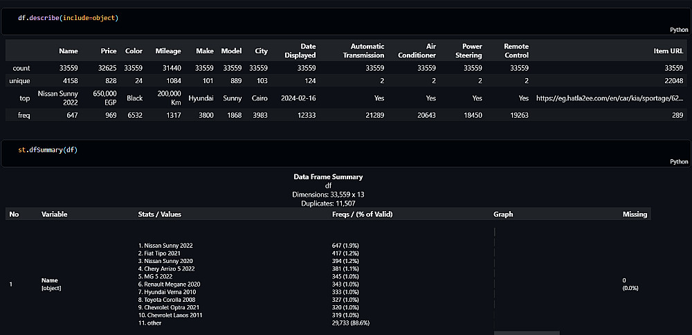 تنظيف البيانات (Data Cleaning): التعامل مع القيم المفقودة (Nulls)، إزالة التكرارات، وتصحيح أنواع البيانات.