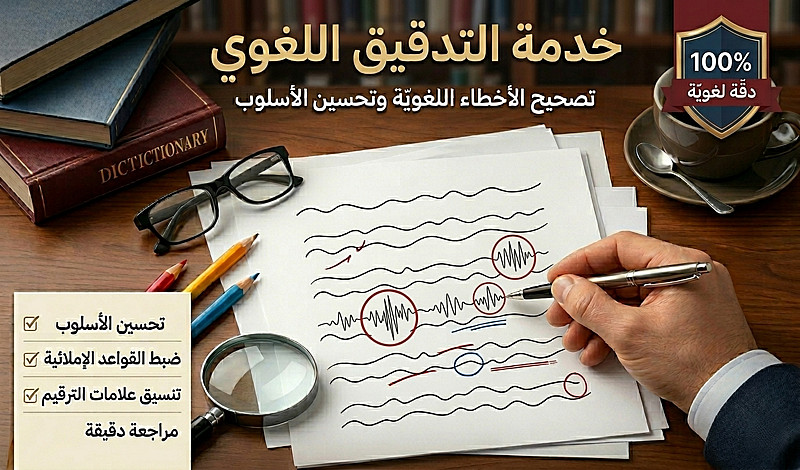 أقدم لك خدمة التدقيق اللغويّ والمراجعة النحويّة والإملائيّة للنصوص العربيّة، لضمان خروج عملك بشكلٍ مثاليٍّ واحترافيٍّ.
