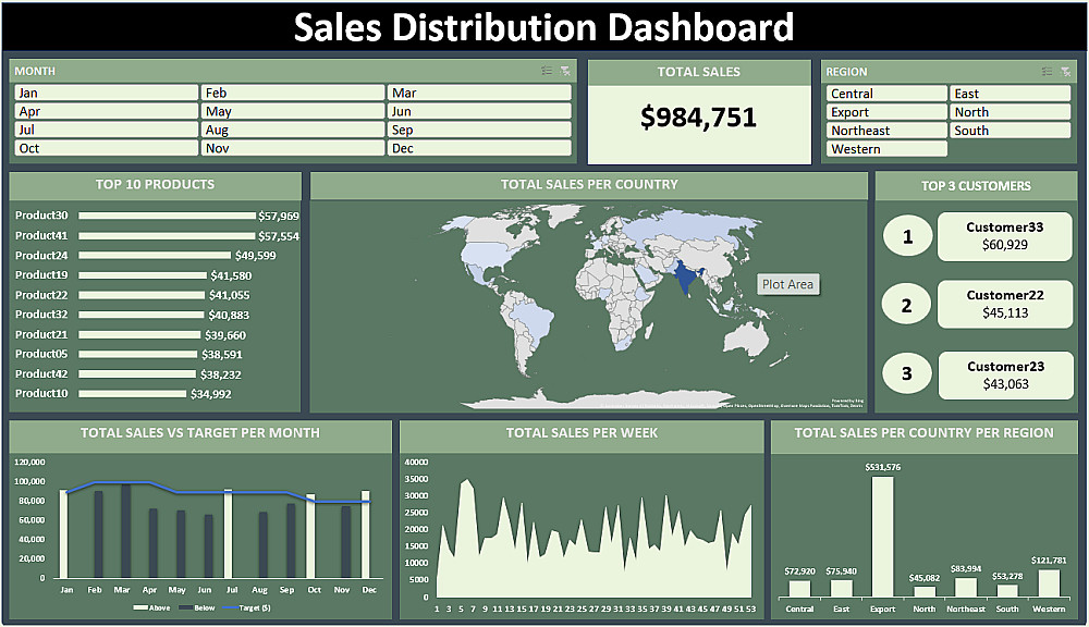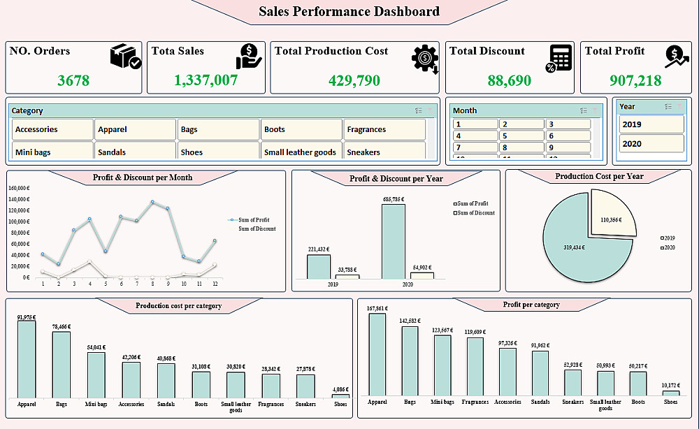 تصميم 5 رسوم بيانية (Charts) احترافية توضح أهم مؤشرات الأداء مع 5 (KPIs).