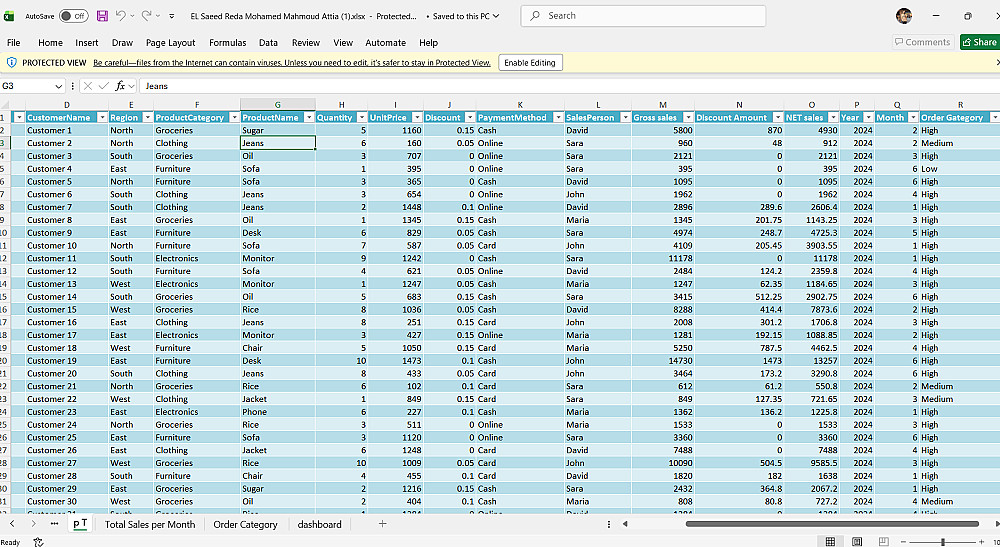 تحليل بيانات وتنظيفها باستخدام Excel وعمل داش بورد احترافي وتفاعلي مع اعداد تقارير احترافيه
