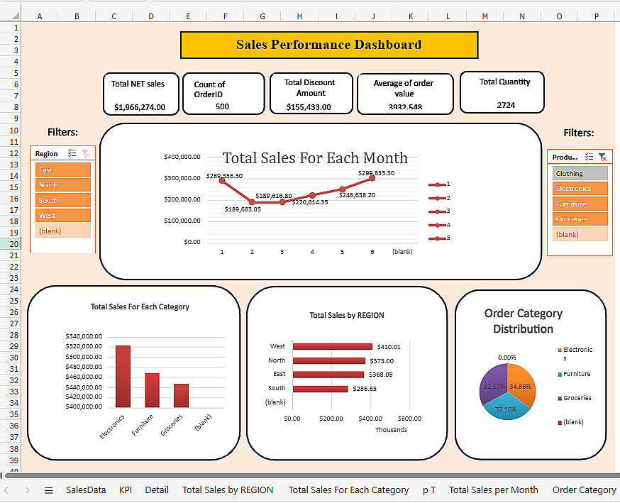 إعداد تقرير Excel من صفحة واحدة يشمل أهم المؤشرات والرسوم البيانية
