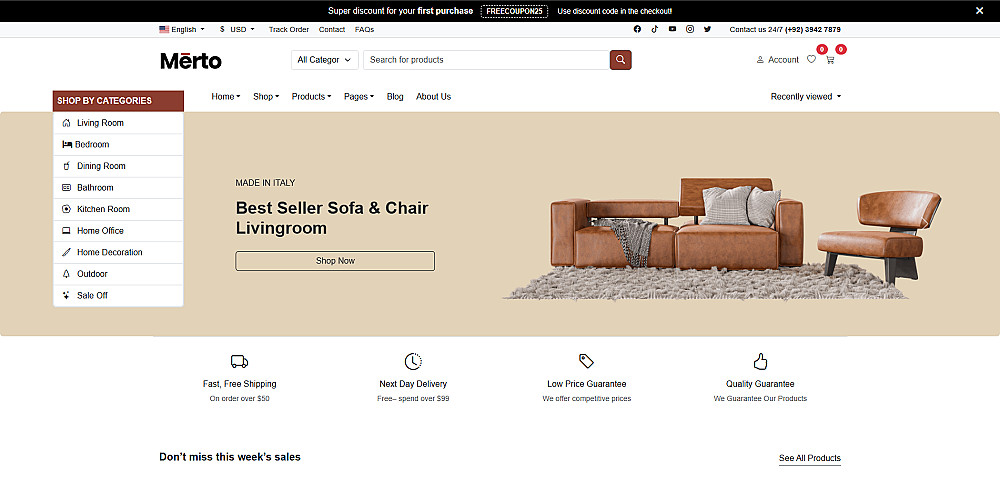 ستحصل على تصميم احترافي وجذاب، موقع متجاوب بالكامل مع جميع الأجهزة، صفحة رئيسية منظمة، عرض منتجات بشكل Grid احترافي، قائمة تصنيفات، شريط بحث، صفحة تواصل، وكود نظيف وسهل التعديل، بالإضافة إلى سرعة تحميل عالية وتجربة استخدام سلسة. الخدمة مناسبة لمختلف أنواع المتاجر مثل الأثاث، الملابس، الإلكترونيات وغيرها، كما أن التصميم قابل للتطوير لاحقًا بإضافة Backend أو API. تشمل الخدمة الأساسية تصميم صفحة واحدة مقابل 5$، مع إمكانية تطويرها إلى متجر كامل متعدد الصفحات أو إضافة خصائص مثل تسجيل الدخول وسلة المشتريات حسب الطلب.