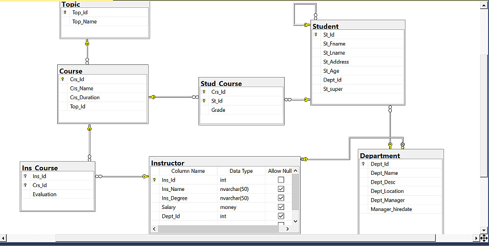 تصميم هيكل (Schema) لعدد 3 جداول مترابطة مع تحديد أنواع البيانات (Data Types) لكل حقل.