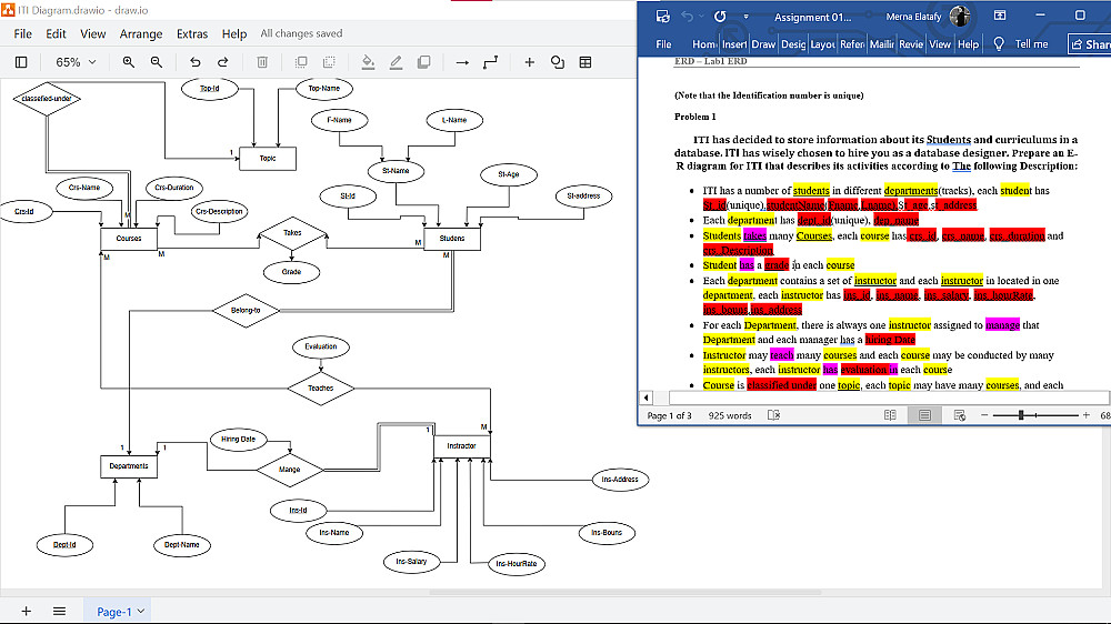 هيكلة البيانات (ERD): تصميم جداول مترابطة ومنظمة تمنع تكرار البيانات وتوفر مساحة التخزين.