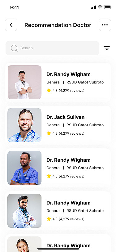 عرض قائمة الأطباء مع التخصصات والتقييمات