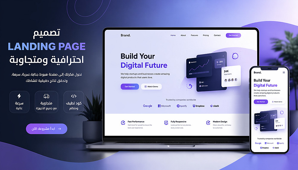 تصميم صفحات هبوط احترافية وجذابة واجهة مستخدم سريعة