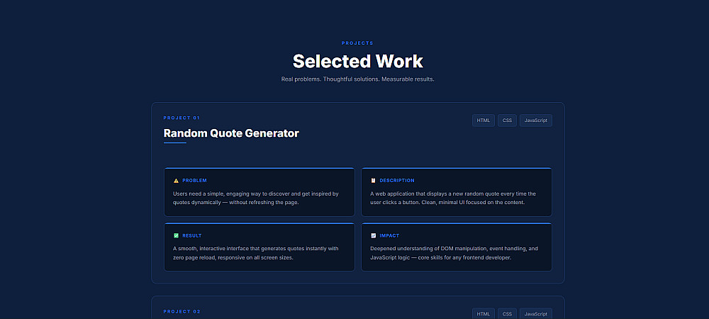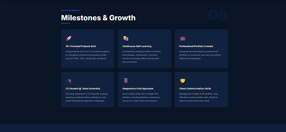 سأقوم بتصميم وتطوير صفحة بورتفوليو احترافية (Landing Page) مكونة من صفحة واحدة فقط، تعرض مهاراتك وأعمالك بشكل عصري وجذاب يساعدك على التقديم على الوظائف وبناء براند شخصي قوي.