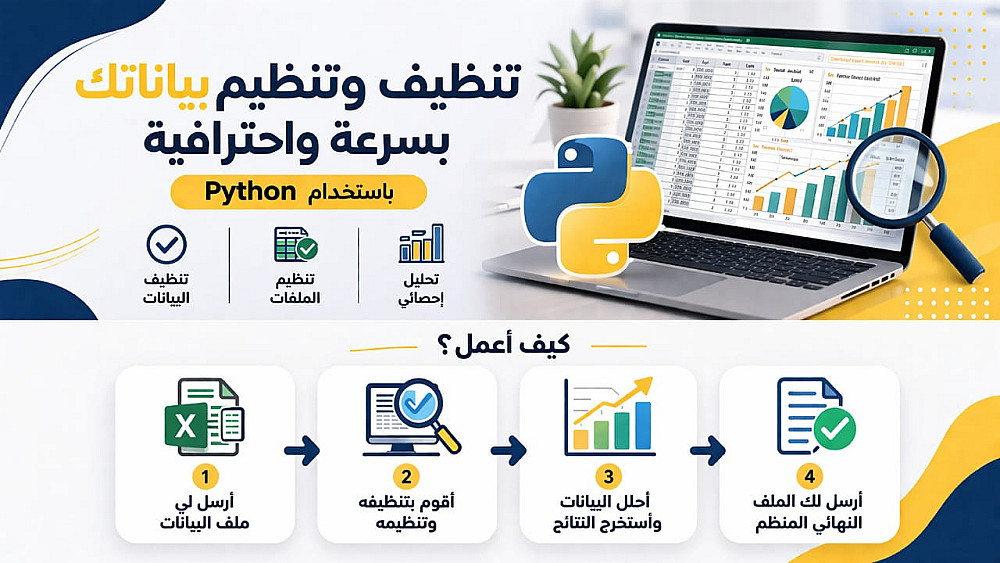 إذا كنت تمتلك بيانات غير مرتبة أو تحتوي على أخطاء وتحتاج إلى تنظيمها وتحليلها بشكل دقيق، فأنا هنا لمساعدتك باستخدام Python وأدوات تحليل البيانات الحديثة.